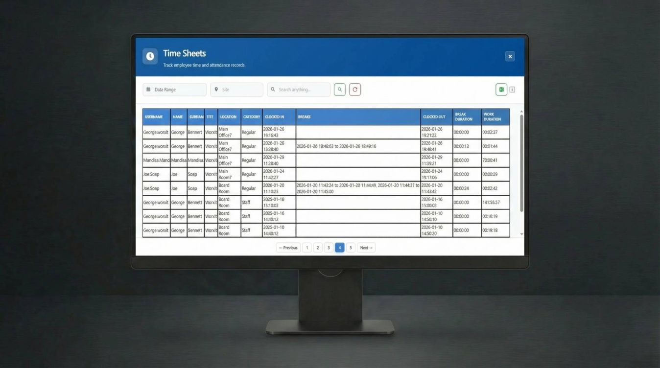 Monitor breaks, shifts, and overtime in real time.